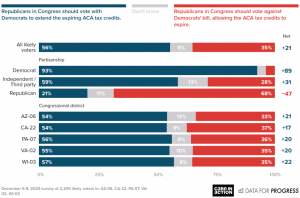 Washington, D.C. — New polling from Data for Progress and Care in Action finds that Republicans in competitive swing districts face electoral vulnerabilities if they oppose extending Affordable Care Act (ACA) premium tax credits.